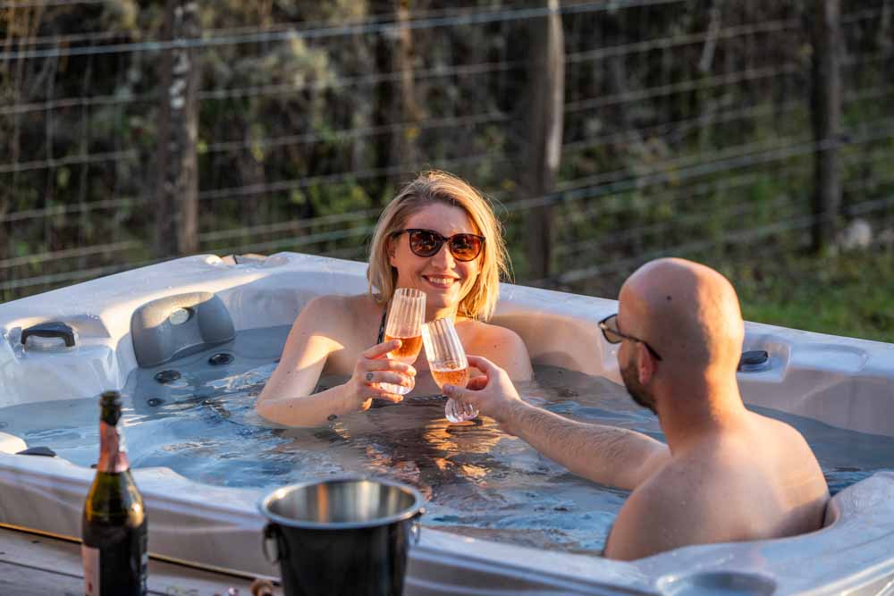 Sur la terrasse, vous trouverez également le spa privatif et le filet de détente, pour un moment suspendu face à la nature.